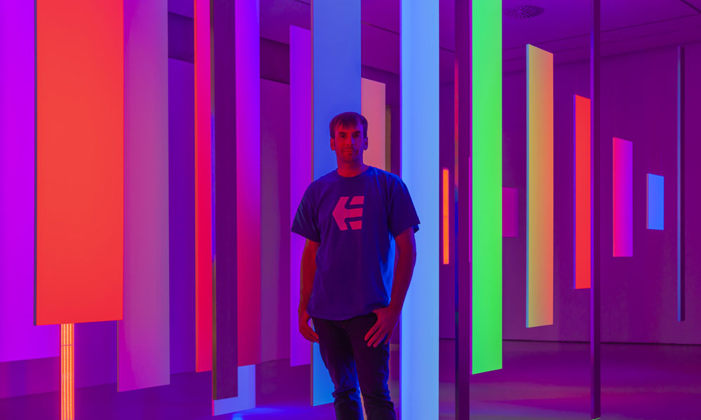 Arquitecturas inmateriales invita al espectador a divagar y perderse en la materialidad de la luz, elemento que deja de iluminar para construir en su reflejarse y dispersarse un espacio etéreo. La luz se configura en múltiples colores que dependen del caminar del espectador. Su punto de vista y recorrido en el mar de luz producirán una configuración arquitectónica única, propia y efímera. Como afirma el propio artista “Vivimos en un mundo obsesionado sobre la comprensión de los fenómenos que nos rodean […] Como artista me parece especialmente interesante llevar al público a un punto de incomprensión en donde uno sea capaz de abstraerse de la realidad conocida […] aunque sea sólo durante un instante”.