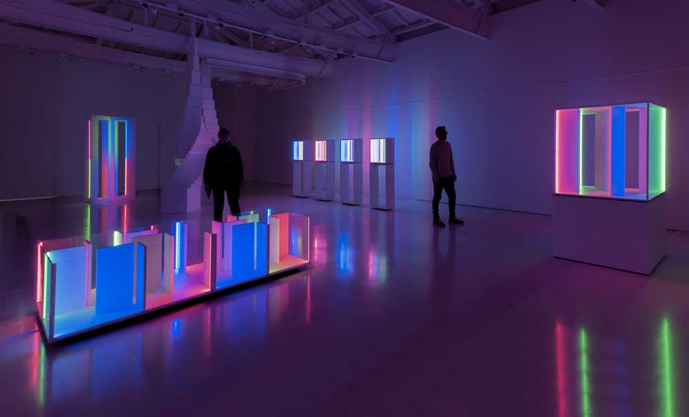 El proyecto presenta cuatro obras que se construyen mediante la articulación de luz y espacio. La modulación de la luz produce una suerte de espacios arquitectónicos. Así pues, la luz se dota de una materialidad, que en su aparecer de distintos colores transforma y expande el espacio ofreciendo una experiencia sensorial al espectador. Como se referencia en el catálogo, el artista hace uso de dos formatos de presentación: modelos, que se exponen en sala y proyectos que se muestran en el catálogo.