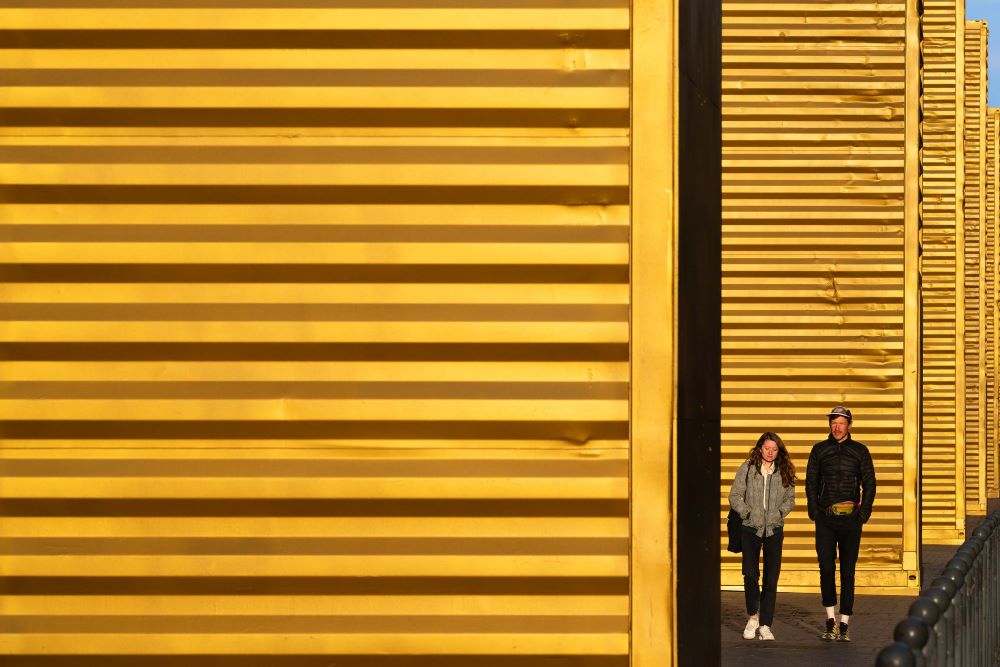 Golden Monoliths convierte la calle en una suerte de pasaje ritual, cambiando la relación e interacción que establece el transeúnte con el espacio público. A través de la verticalidad de los contenedores, SpY redefine la función del espacio, invitando a los visitantes a detenerse y observar más allá del tránsito diario. La propuesta subraya así mismo la capacidad de la instalación para transformar el espacio, desafiando a aquellos que habitan la ciudad a cuestionar sus estructuras y a redefinir su relación con los espacios que se habitan de forma cotidiana.