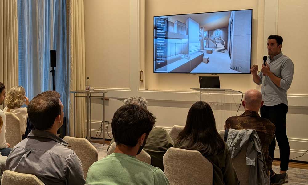 Guillermo Martínez, responsable de diseño de iluminación en ARUP, centró su presentación en el poder de la luz para transformar experiencias en entornos de lujo. Explicó cómo la iluminación, más allá de ser funcional, tiene el potencial de generar emociones profundas, creando sensaciones de exclusividad y deseo en el cliente. A través del juego de sombras y acentos, la luz puede destacar productos clave, influir en el estado de ánimo de las personas y prolongar su permanencia en los espacios, haciendo de la experiencia de compra algo envolvente y memorable. Guillermo destacó la importancia de cada detalle lumínico para contactar emocionalmente con los clientes.