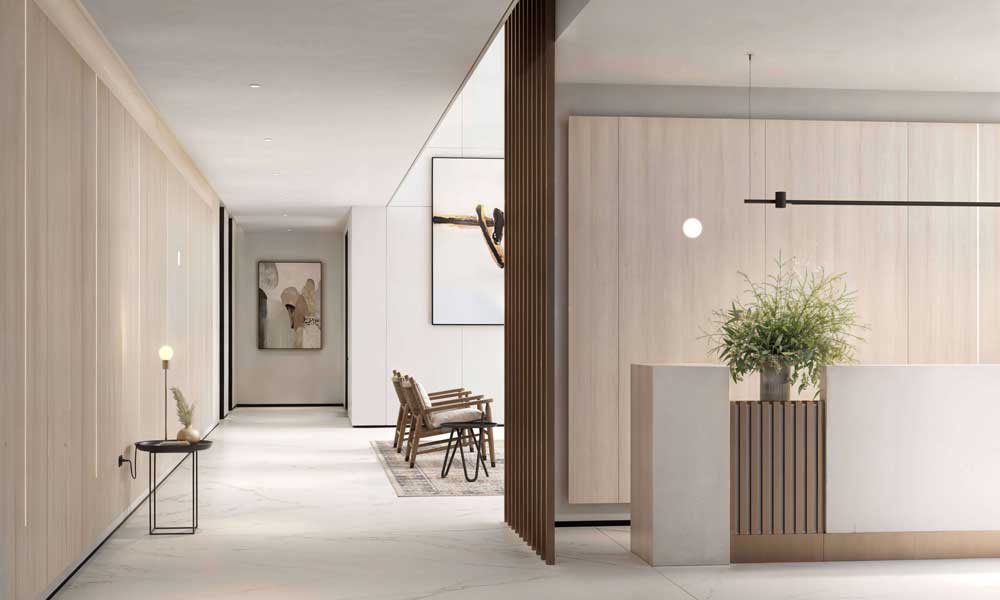 La versatilidad cromática permite integrar E-Panel en todo tipo de estilos, desde interiores cálidos y naturales hasta espacios más sobrios o contemporáneos. Además, se completa con paneles ciegos para instalaciones y módulos de inicio y fin para un acabado uniforme.