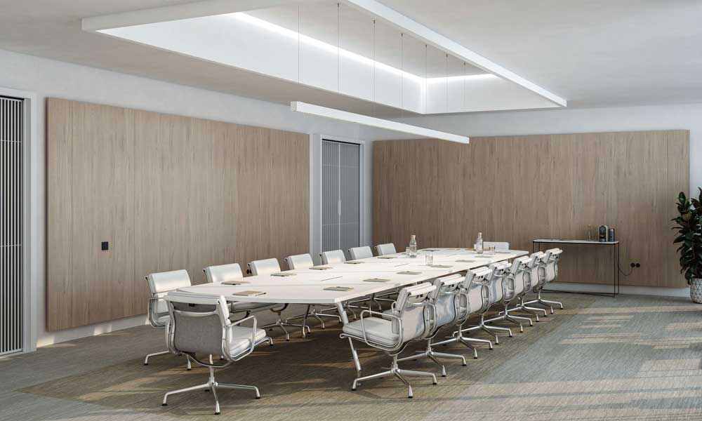 E-Panel nace como una propuesta integral para proyectos de arquitectura interior que requieren soluciones técnicas avanzadas sin renunciar al diseño. El sistema se basa en paneles registrables colgados sobre una estructura trasdosada, con instalación en seco y sin necesidad de obra húmeda, lo que reduce plazos y facilita su desmontaje y reutilización.