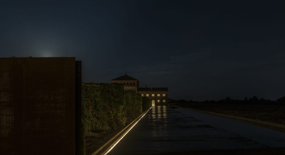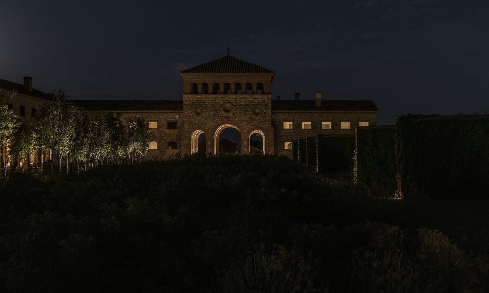 Finalmente, se colocan acentos discretos en la vegetación exterior, el toque que hace de la Granja Perelada un paisaje reinventado para la cata de vinos entre sutiles y acogedores matices lumínicos.