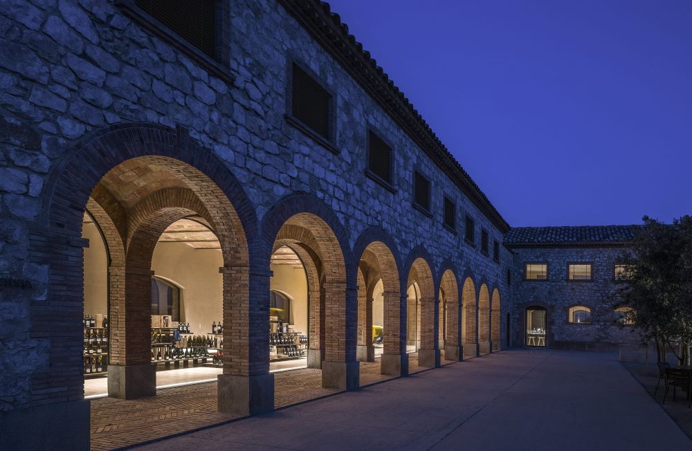 La Granja de Perelada, tradicionalmente una explotación agrícola, ha sido convertida en un lugar para la experiencia, venta de vinos y degustación. El diseño arquitectónico de RCR Arquitectes reinventa el lugar. El espacio se compone de distintos edificios porticados que albergan la entrada, el restaurante y la tienda.