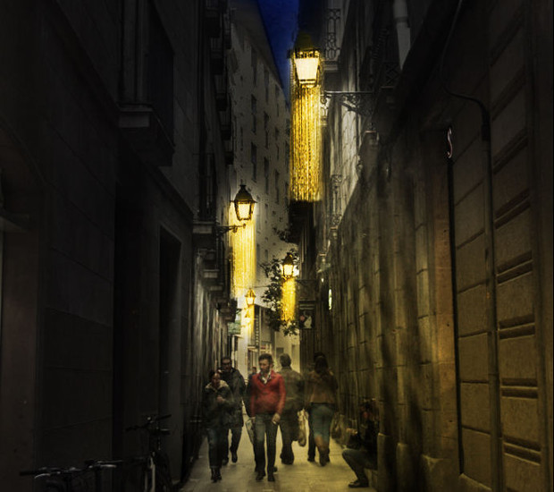 Llum-i-links es el nombre de la instalación efímera creada por la diseñadora de iluminación Michela Mezzavilla en colaboración con artec 3 Studio para guiar a los asistentes por las calles del barrio de Ciutat Vella en cada uno de los tres itinerarios -Mar, Catedral, Ramblas- del festival.