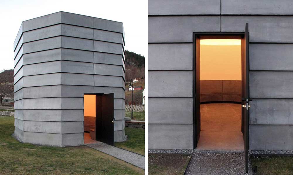 En esta ocasión el estudio de arquitectura A-Works con sede en Bergen ha colaborado con el artista americano en la configuración y acabados del edificio octogonal, haciendo uso de materiales propios de los países escandinavos.