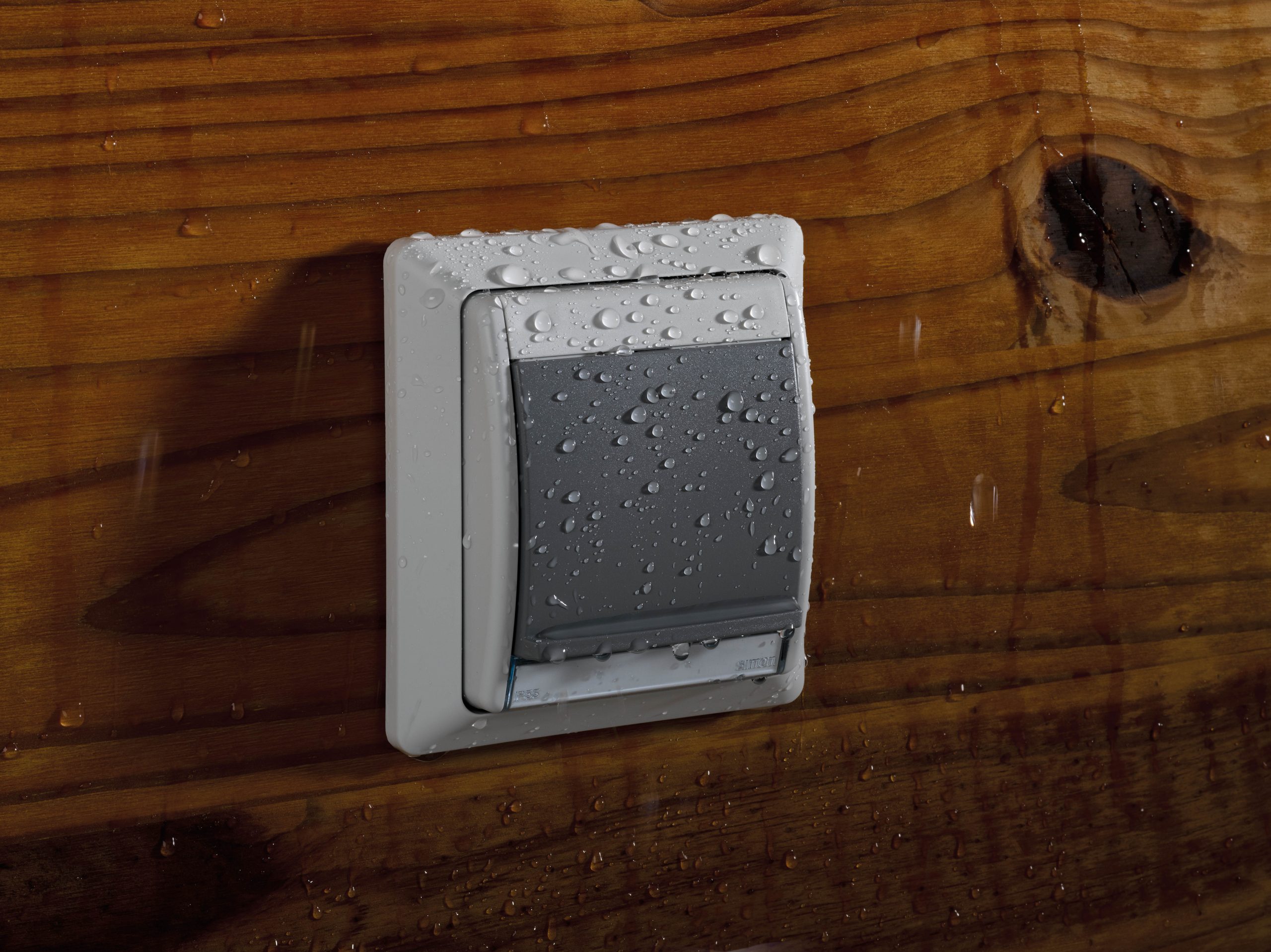 Simon Aqua está disponible en dos formatos: el formato de empotrar y el de superficie. El formato de empotrar, con marco y con grado de dureza IK08, se presenta idónea para aquellas superficies en las que interesa que el mecanismo pase más desapercibido. Para conseguir que se integre mejor con el entorno, requiere una manipulación previa de la pared, reforzando así su grado de dureza.