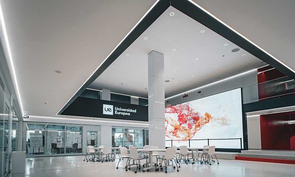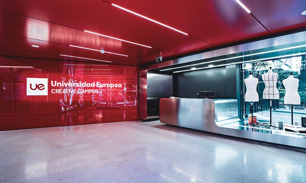 Situado en la céntrica calle María de Molina en Madrid, el nuevo edificio Creative Campus de la Universidad Europea es un espacio educativo de 4.450 m² que transforma el entorno de aprendizaje para los futuros diseñadores, artistas y creativos. Diseñado por Sotodosos y Asociados, el proyecto de iluminación realizado en colaboración con Rafael Gallego de Aureolighting utiliza la línea como elemento protagonista que redefine la arquitectura del edificio.