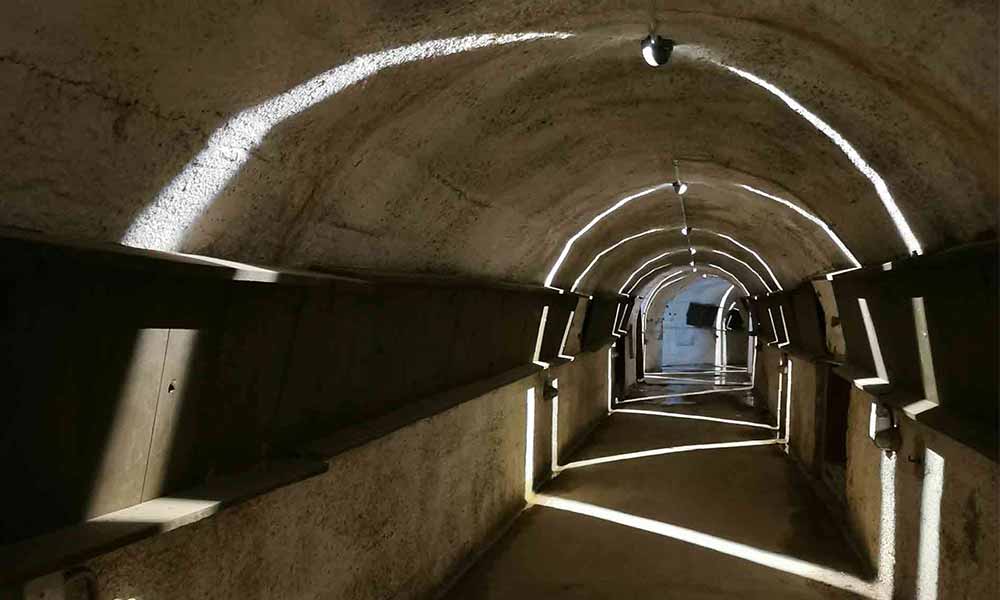 Como parte del proyecto de rehabilitación del paisaje del castillo, se llevó a cabo una intervención lumínica en los búnkeres con la intención de reactivar el espacio y su memoria. El desafío era transformar un emplazamiento histórico con un presupuesto limitado, y el equipo liderado por Paola Medina Querini logró hacerlo de manera brillante. El concepto de iluminación está inspirado en un viaje a través del tiempo, la historia pasada y su memoria. Con los haces de luz de acento se abre un atractivo camino a lo largo de sus 100 metros de recorrido.