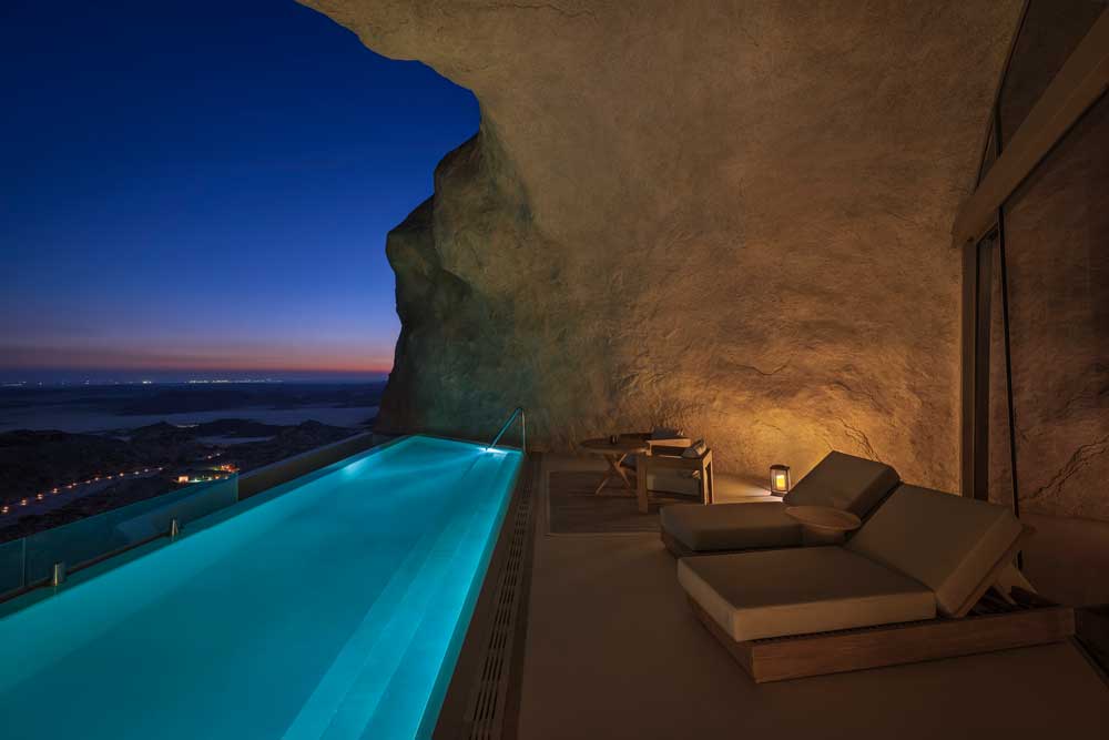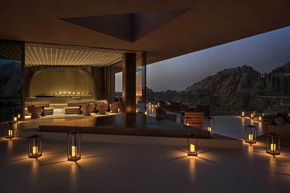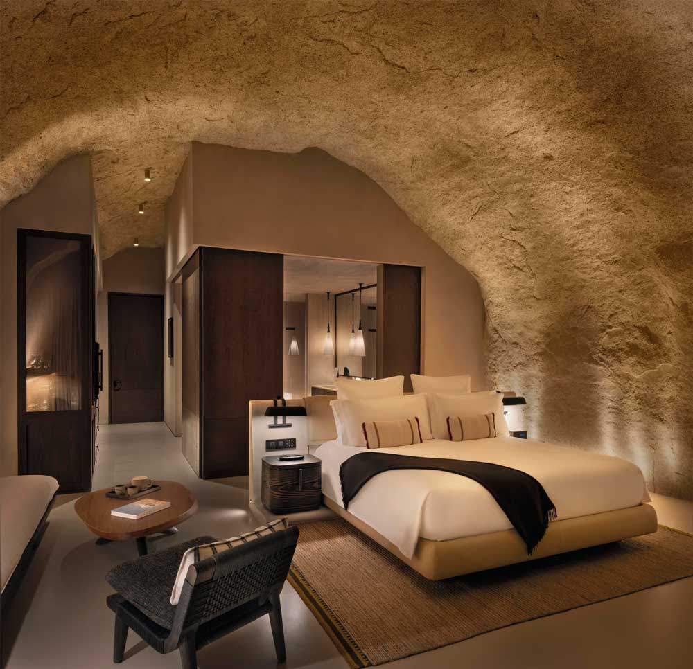 Para materializar esta visión, el equipo de Delta Lighting Design, liderado por Ziad Fattouh, ha desarrollado un lenguaje lumínico que revela sin imponerse. La luz artificial no invade el entorno: lo descubre. Las superficies arenosas reflejan suaves piscinas de luz que animan los volúmenes excavados con una delicadeza escultórica. Los puntos de luz se mantienen por debajo del nivel visual, lavando las superficies desde abajo y manteniendo los techos limpios, como si fueran prolongaciones naturales del cielo.