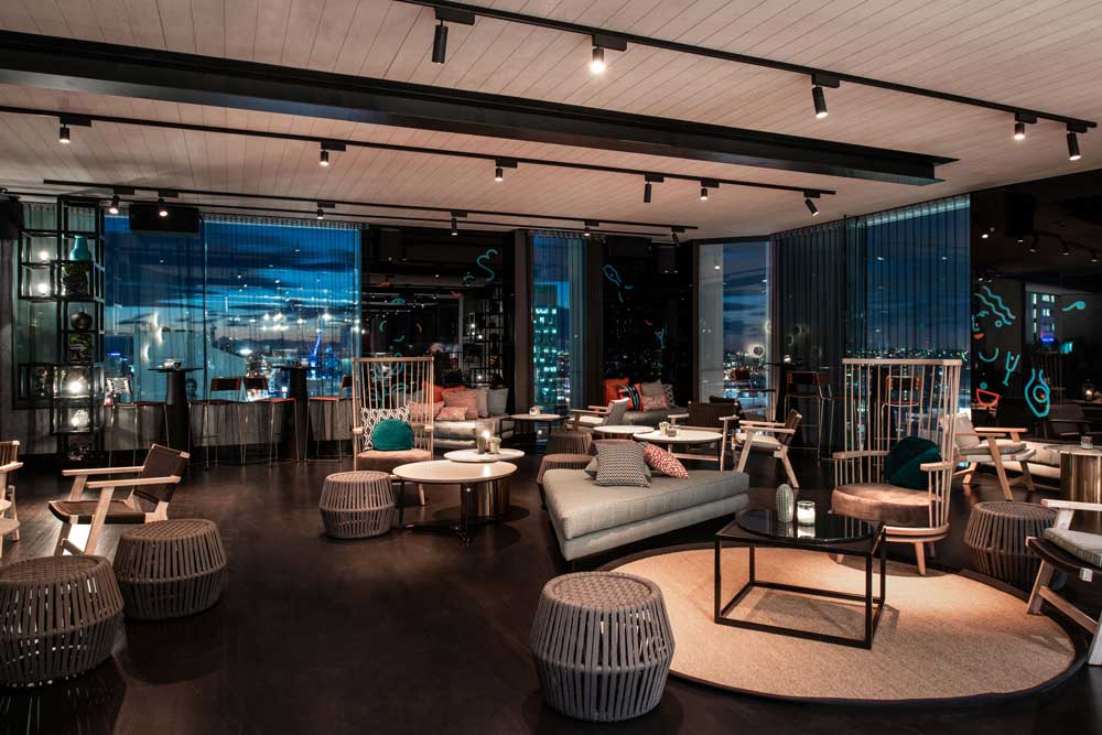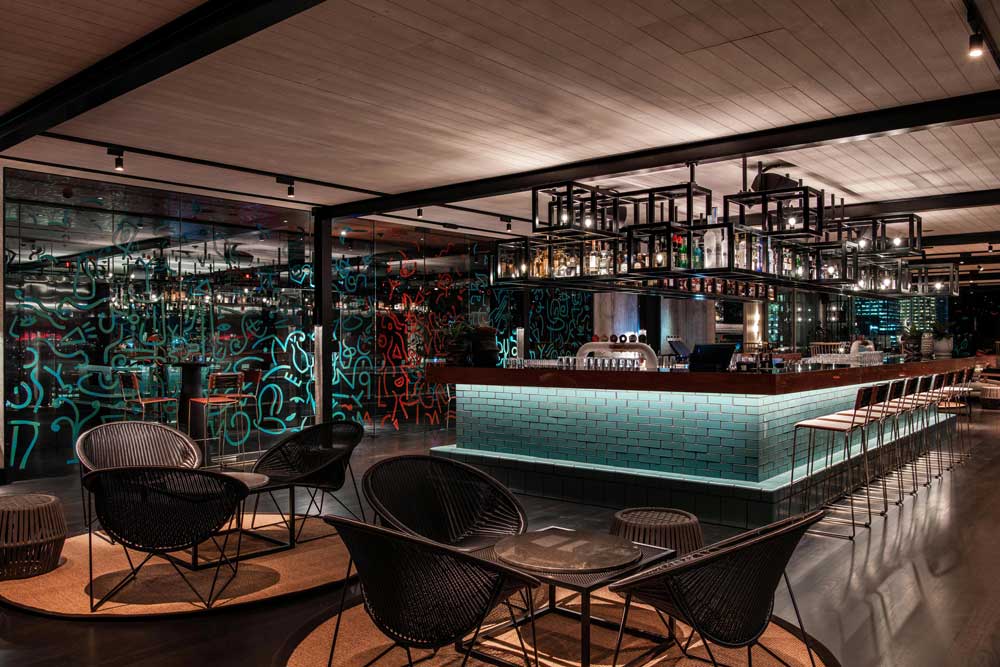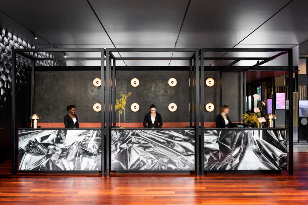 Event Entertainment and Hospitality, inspirándose en la idea de David Seargeant, ha realizado este nuevo hotel QT contando con la colaboración de Candalepas + Associates en la parte arquitectónica, de Nic Graham + Associates en la decoración de interiores de las zona de recepción y de Indyk Architects para la decoración de interiores de habitaciones y apartamentos.