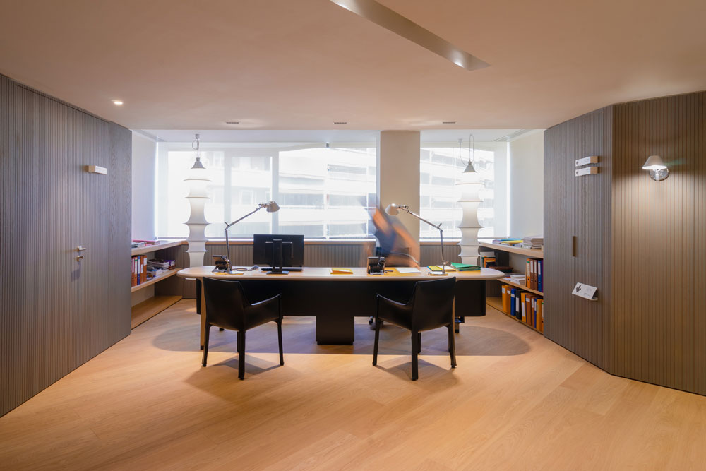 “Nos hemos enfrentado a un complejo programa, de oficinas, atención al público y zona de representación y reunión, que tenía que satisfacer estrictos requerimientos de seguridad y al mismo tiempo representar un cambio de paradigma hacía un espacio no sólo técnico y administrativo, sino más amable y cálido, donde los visitantes se encuentren acogidos como si estuvieran en sus casas. Para cumplir con este objetivo el recorrido está especialmente estudiado para que los elementos de seguridad pasen desapercibidos y queden totalmente integrados en el interiorismo, gracias también a la elección de materiales cálidos y elementos de mobiliario más domésticos” explica Gabriele Schiavon del estudio Lagranja Design.