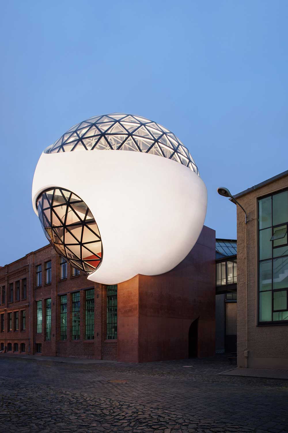 Quizás no fue solo la inusual tarea de construcción, sino también la actitud artística y el coraje del cliente para empujar los límites de lo que era posible con la estática, lo que convenció al gran arquitecto de expresar su poder creativo en el diseño de una esfera de 12 metros de diámetro. La historia dio un giro triste cuando Niemeyer murió un año después, en diciembre de 2012, pero su trabajo fue implementado póstumamente por Jair Valera, su mano derecha en la oficina de Río de Janeiro y Harald Kern, el arquitecto local en Leipzig.