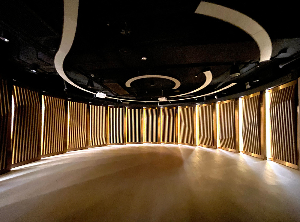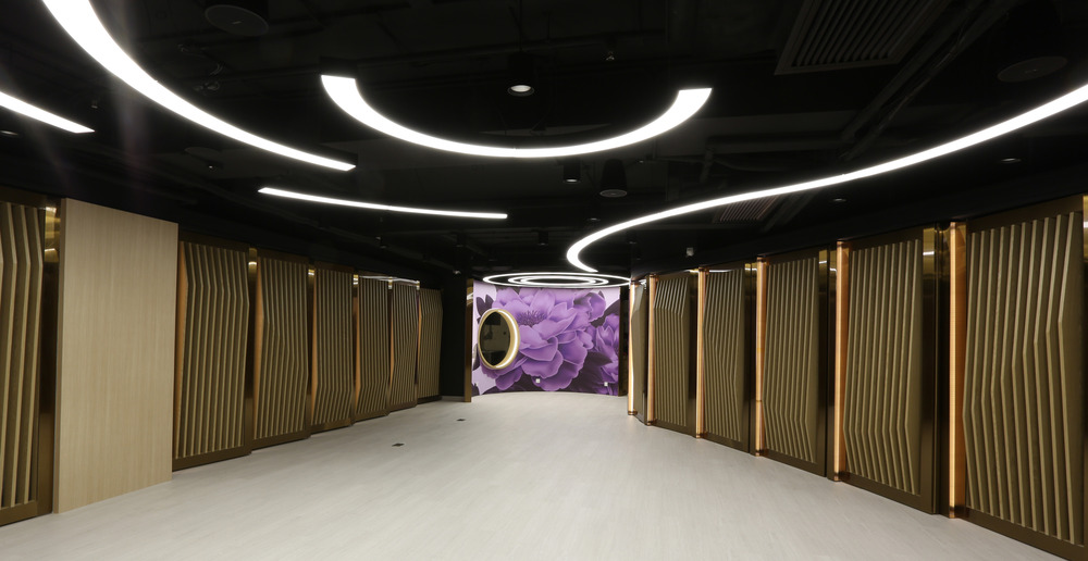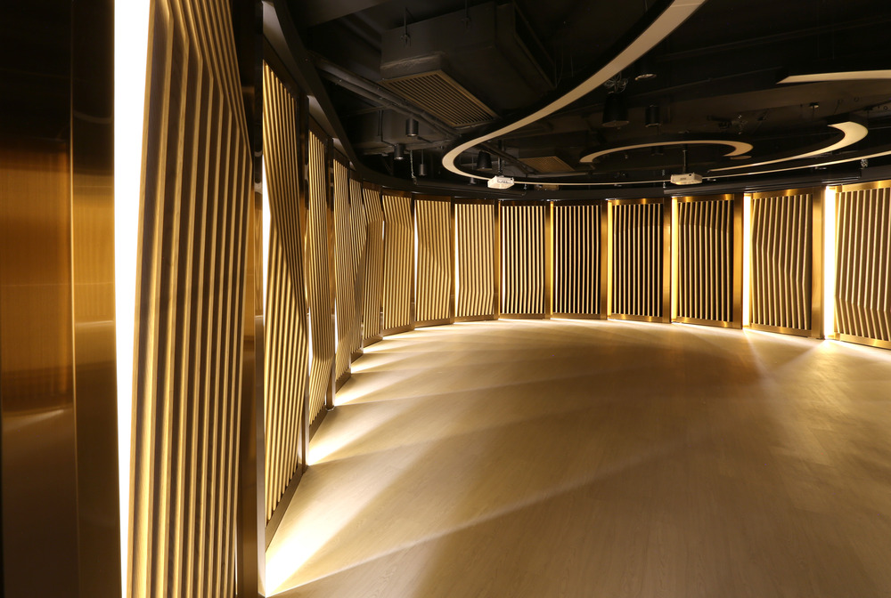 El principal desafío del proyecto fue capturar la esencia del «flujo del dragón» en la arquitectura interior sin ser figurativo. Las paredes curvas presentan paneles segmentados que se superponen como las escamas de un dragón. Las persianas en cada panel segmentado tienen un perfil que cambia gradualmente, iluminado por una luz lateral a un ángulo calculado. El resultado es un juego de luces y sombras que da vida a la curva sinuosa, creando un flujo de movimiento desde un punto hasta otro.