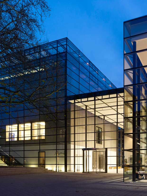 La iluminación del museo dedicado a la obra del pintor Emil Schumacher consigue óptimas condiciones de visualización y conservación de las obras expuestas y un funcionamiento energéticamente eficiente. Al anochecer el vanguardista edificio se abre visualmente al exterior gracias a su orquestada luz interior.