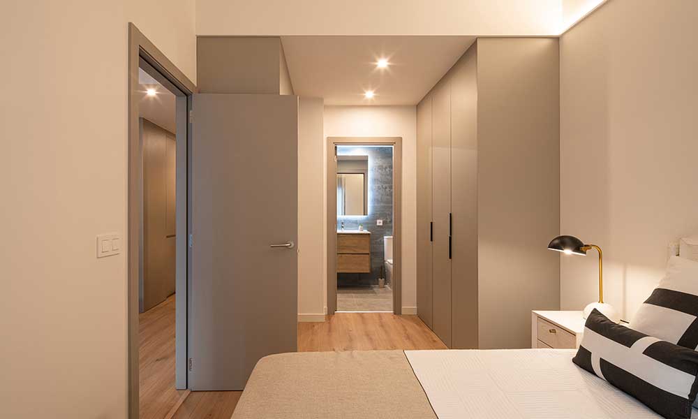 El complejo residencial se completa con soluciones lumínicas de FREPI, BEGHELLI y ZAMBELIS, distribuidas según el carácter y uso de cada espacio. En las zonas comunes, las luminarias empotrables de alto confort visual se distribuyen e integran de forma precisa y ordenada.