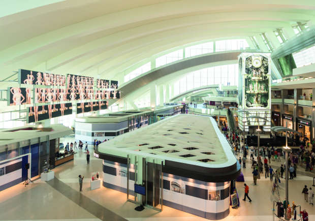 • La torre de reloj, un reloj funcional con cuatro lados de casi 22 metros de altura, construido alrededor de los ascensores principales y completamente cubierto con escenas animadas, como una selva llena de animales y un tributo único a la era del cine mudo. También incluye una superficie interactiva que reacciona a las acciones de los pasajeros y desencadena efectos visuales personalizados, en tiempo real.