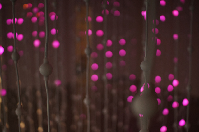 Linternas, moviéndose muy lentamente, esferas de luz surcan el espacio, suspendidas en el aire, acercando y alejandose. El espacio se divide en dos volúmenes por medio de un plano de movimiento. Cuando accedes se observa un espacio iluminado, estés donde estés.
