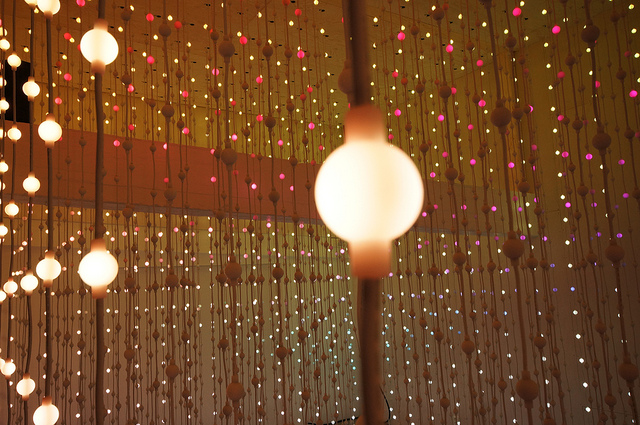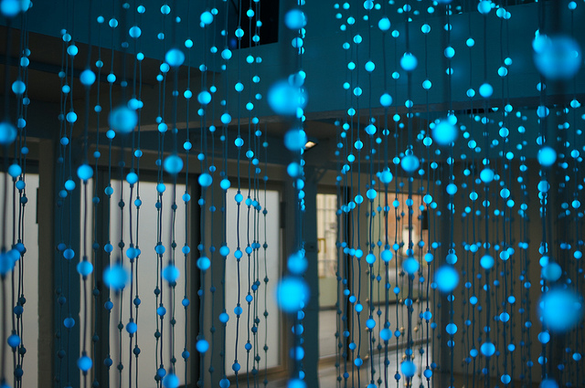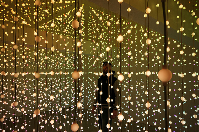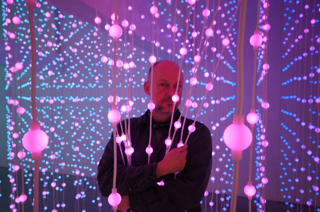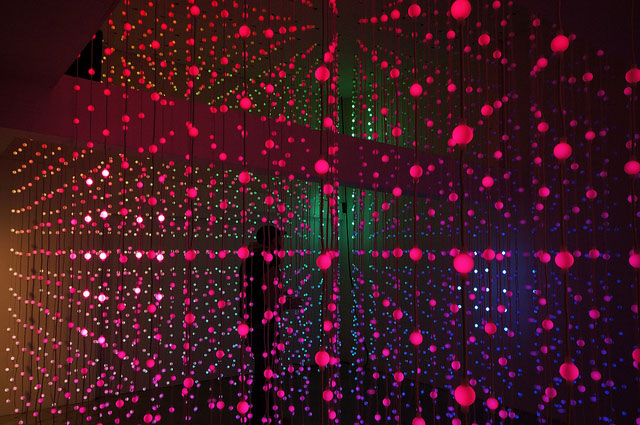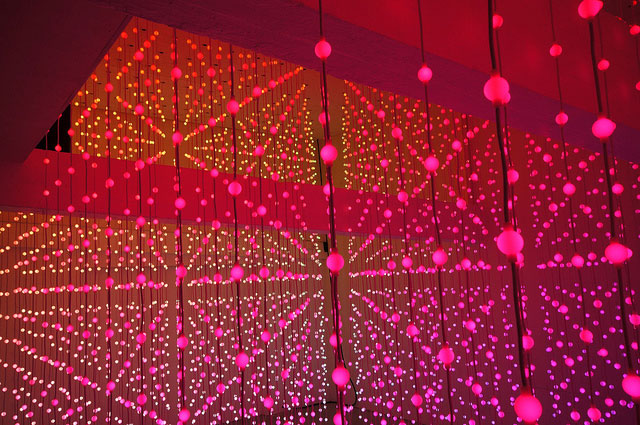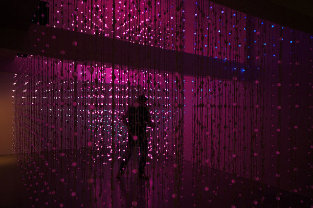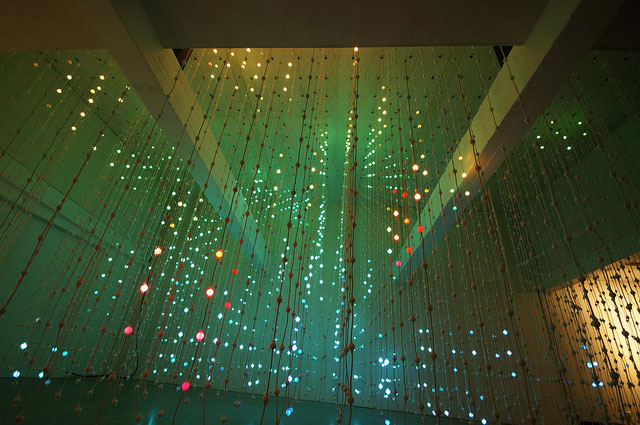 La exposición utiliza 8.064 puntos de luz suspendidos en un espacio físico.